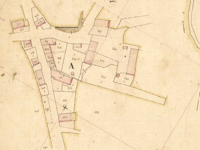 Extrait du cadastre de 1845 : le centre du bourg (détail)Immatriculation