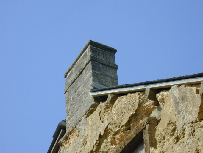 Le logis-étable, cheminée gravée d'une date : détailImmatriculation