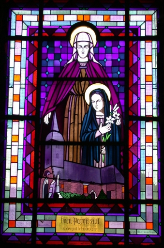 Verrière à personnages de la baie 6 : Offrande de la paroisse à sainte Anne et à la Vierge,