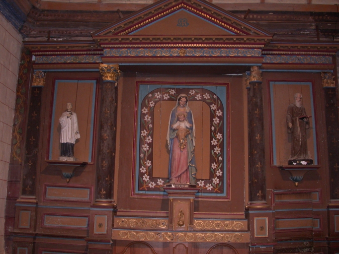 Ensemble de l'autel de la Vierge : autel, tabernacle, retable, 2 gradins d'autel, 2 degrés d'autel,