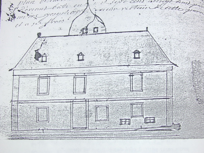 Façade est du presbytère sur un croquis du 18e siècleImmatriculation