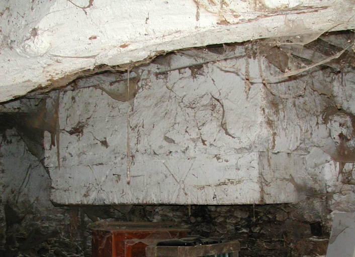 Vue de la cheminée portant un écusson muet entre deux croix de saint AndréImmatriculation