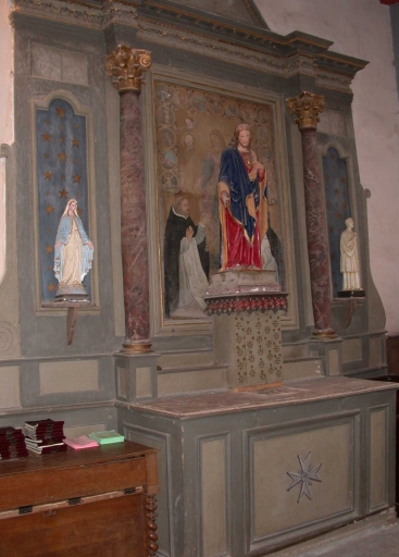 Ensemble de l'autel du Rosaire : autel, tabernacle, gradin d'autel, retable, degré d'autel, antependium,