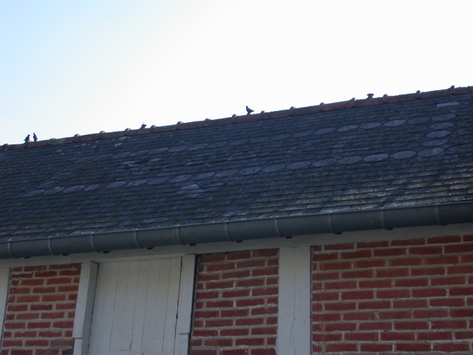 Dépendances, oiseaux en céramique sur le faitage du toitImmatriculation
