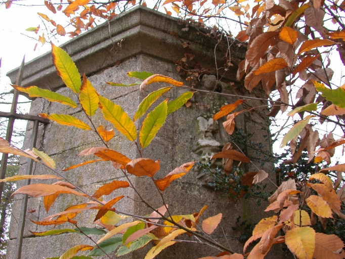 Ancienne entrée Est du château, détail d'un pilier avec remploi d'un ange sculptéImmatriculation