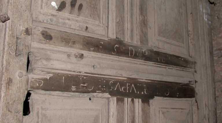 Inscription sur la porte du palier de l'étage accédant à la chambre haute de l'étage de combleImmatriculation