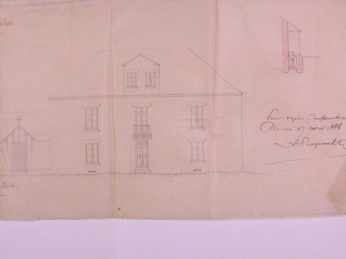 Mairie ; élévation nord ; signature de l'architecteImmatriculation
