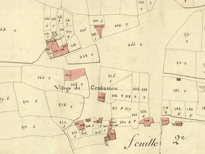 Crabassou sur le cadastre de 1810Immatriculation