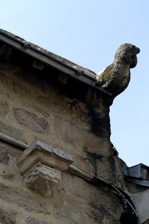 Pierre d'assise du rampant nord-est sculptée d'un lion et console en pierre blanche.Immatriculation