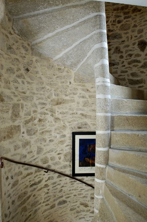 Escalier en vis, vue prise du palier de l'étage.Immatriculation