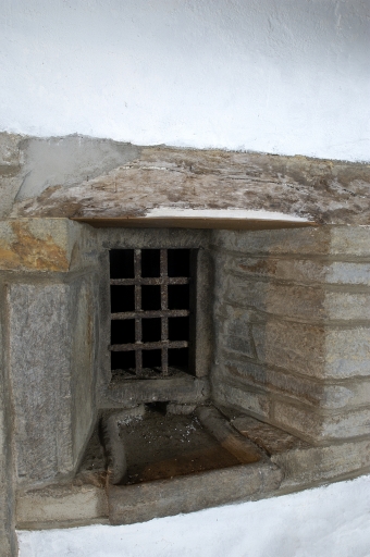 Logis est, pièce de l'étage, mur nord : jour et lavabo.Immatriculation