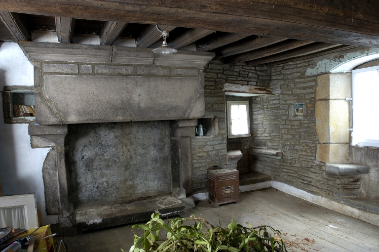 Logis est daté 1576, pièce de l'étage, cheminée et fenêtre à coussiègeImmatriculation