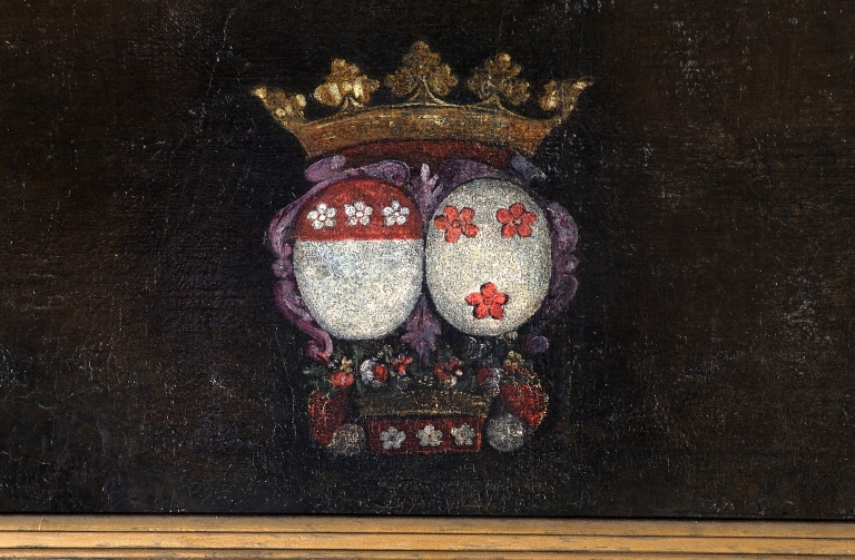 Tableau de la Donation du rosaire à saint Dominique et sainte Catherine de Sienne,