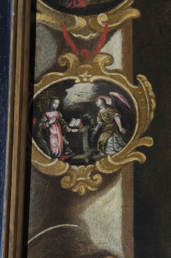 Tableau de la Donation du rosaire à saint Dominique et sainte Catherine de Sienne,