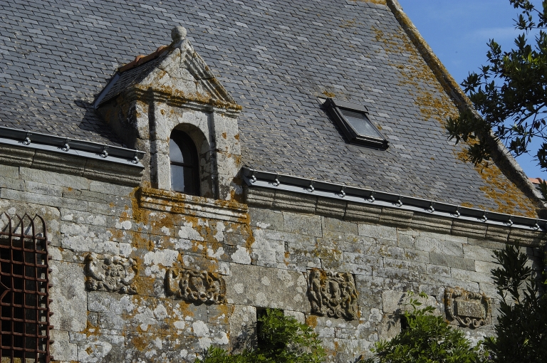 Elévation antérieure, étage : détails des pierres sculptéesImmatriculation