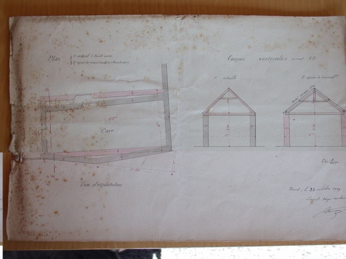 Projet de reconstruction d'un hangar cave, signés de l'agent-voyer Thomas, 1909 (AD morbihan, 2 O 16/6)Immatriculation