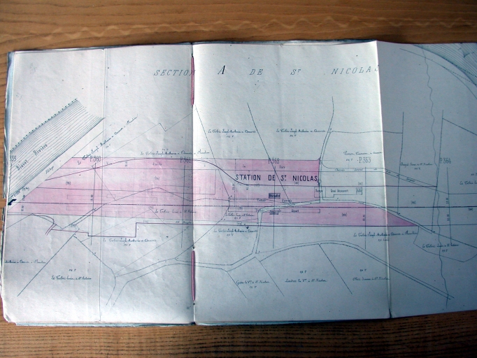 Emprise de la voie de chemin de fer et de la gare et remise ferroviaire. Plan, 20 avril 1864. (AD Morbihan, S 271)Immatriculation