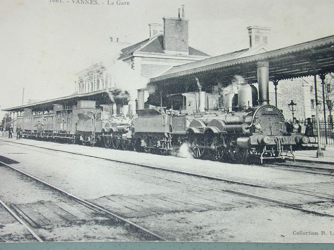 La gare de Vannes. Carte postale ancienne. Collection H. Laurent, Port-Louis. AM Vannes 7Fi.Immatriculation