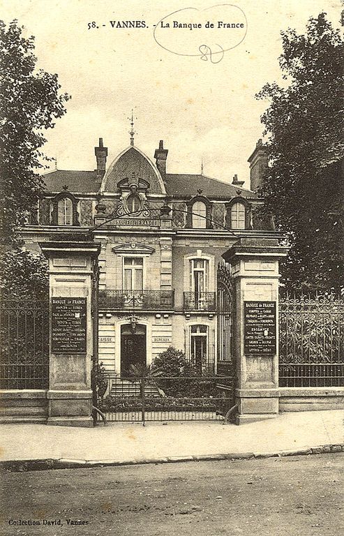 La Banque de France. Carte postale collection David, Vannes. Collection privée.Immatriculation