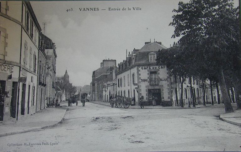 Entrée de la ville de Vannes depuis le quartier de la gare vers les avenues Victor Hugo et Saint-Symphorien. Carte postale ancienne. Collection H. Laurent Port-Louis. AM Vannes 7Fi.Immatriculation