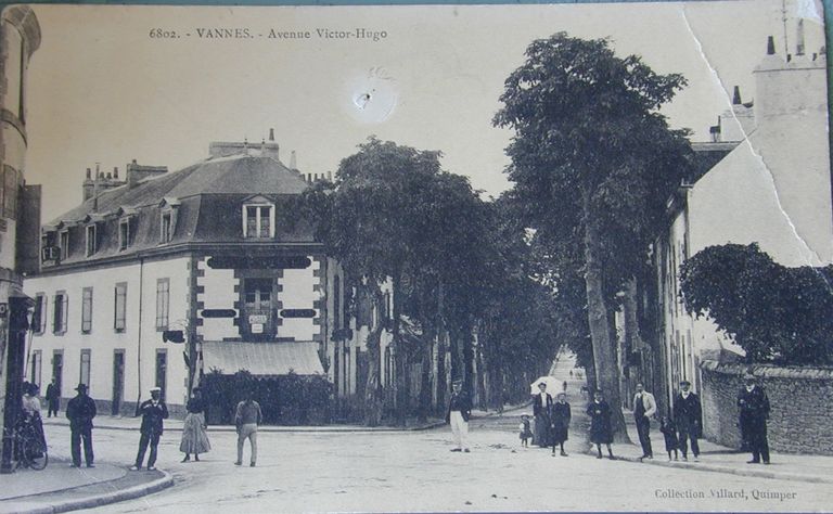 Avenue Victor Hugo et entrée de l'avenue Saint-Symphorien depuis la gare. Carte postale ancienne. Collection Villard, Quimper. AM Vannes 7Fi.Immatriculation