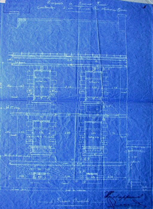 Elévation de la façade antérieure par Huchet, 1911. AM Vannes 5I162.Immatriculation