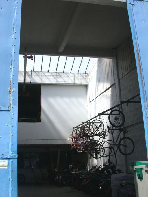 Vue intérieure de l'atelier. Eclairage zénital.Immatriculation