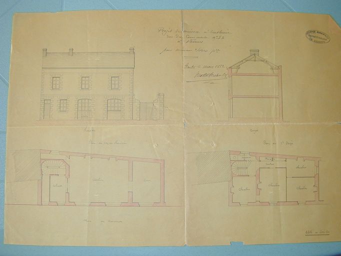 Projet de plans et élévations par Mathurin Fraboulet pour Mr Sorro. AM Vannes 1O 216, alignements 1874-1883, sous-dossier 1876.Immatriculation