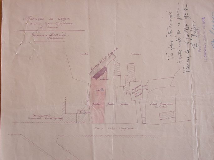 Plan de situation de la fabrique de cierges, 1928. AD Morbihan 5M229.Immatriculation