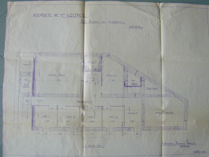 Plan du sous-sol de la maison Grenier par I. Ronco (s.d.). AM Vannes 5 I 162.Immatriculation