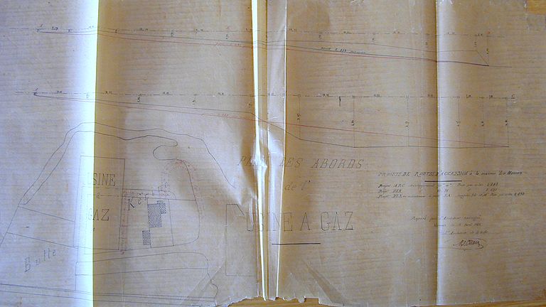Plan des abords de l'usine à gaz, 1866. AD Morbihan 5M229.Immatriculation