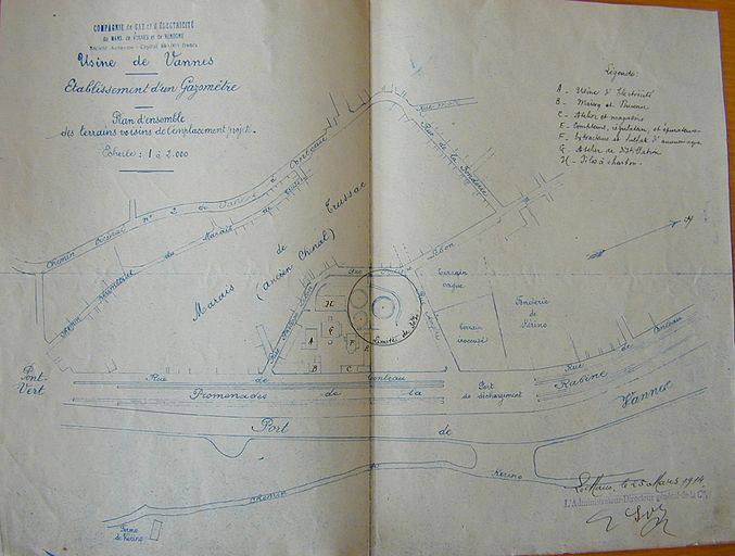 Plan de situation de l'usine à gaz, 25 mars 1914. AD Morbihan 5M229.Immatriculation