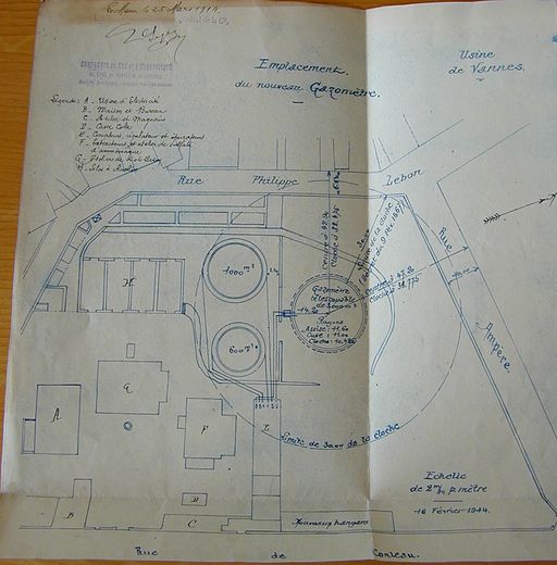 Plan au sol de l'usine à gaz, 16 février 1914. AD Morbihan 5M229.Immatriculation