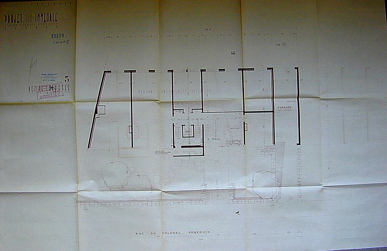 Plan du rez-de-chaussée par Guillou, 1960. AM Vannes 1G59.Immatriculation
