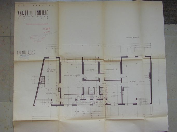 Plan du premier étage par Guillou, 1962. AM Vannes 1G59.Immatriculation