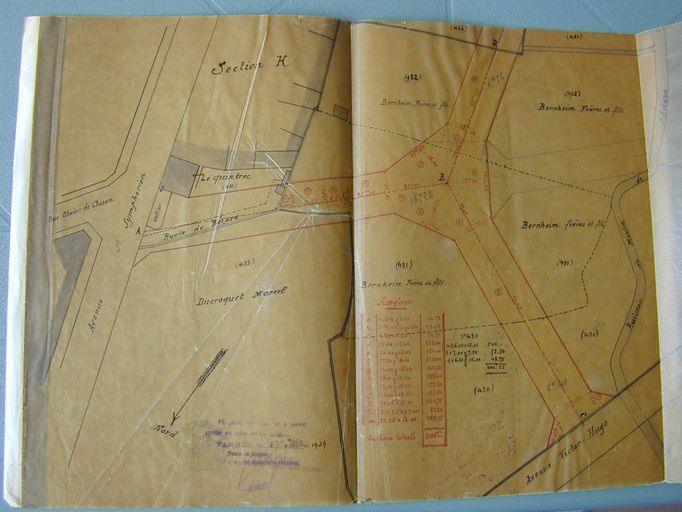 Plan métré dressé pour le projet d'exécution des rues reliant l'avenue Saint-Symphorien à l'avenue Victor Hugo et à la place Saint-Nicolas, 1er octobre 1924. AM Vannes 10216 acquisition Bernheim.Immatriculation