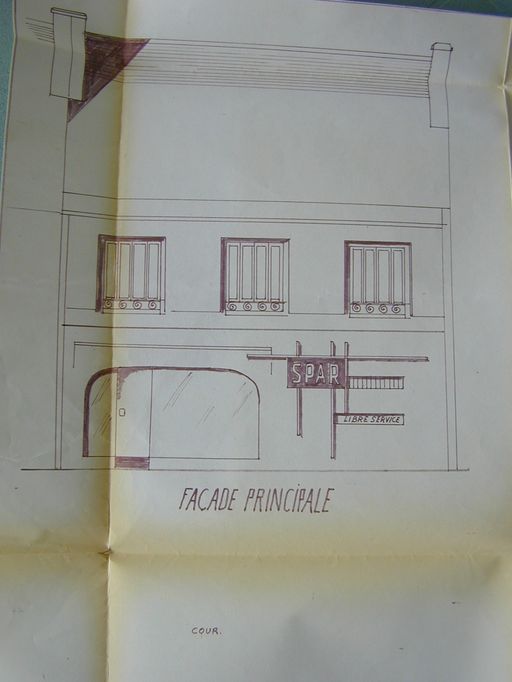 Projet de façade commerciale Spar n°8 de l'avenue maison Lorcy, 1966. AM Vannes 1G59.Immatriculation