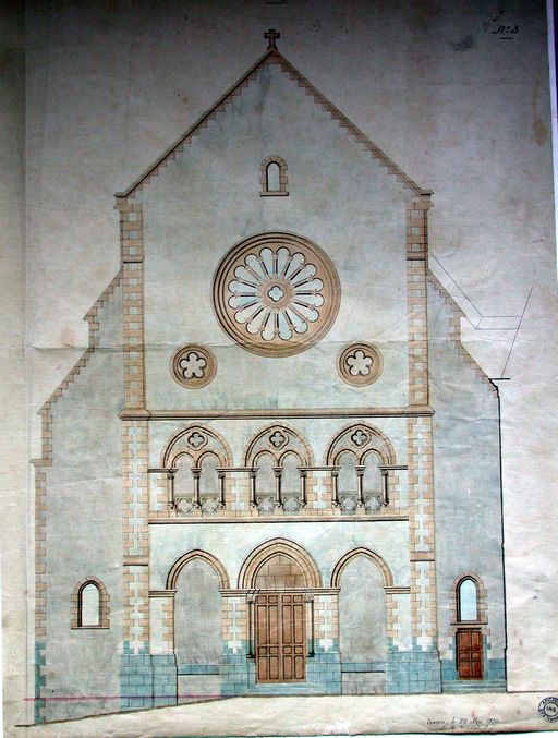 Elévation de la façade de l'église par le révérend père Tournesac, 1870. Fonds Saint-François-Xavier. AM Vannes.Immatriculation