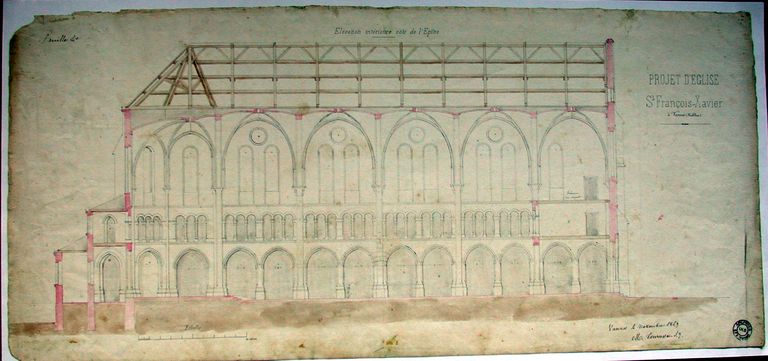 Coupe côté de l'épitre par le révérend père Tournesac, 1869. Fonds Saint-François-Xavier. AM Vannes.Immatriculation