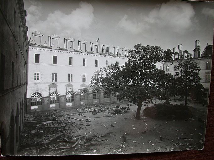 Le cloître, vue après l'incendie de 1949. Fonds Saint-François-Xavier. AM Vannes.Immatriculation
