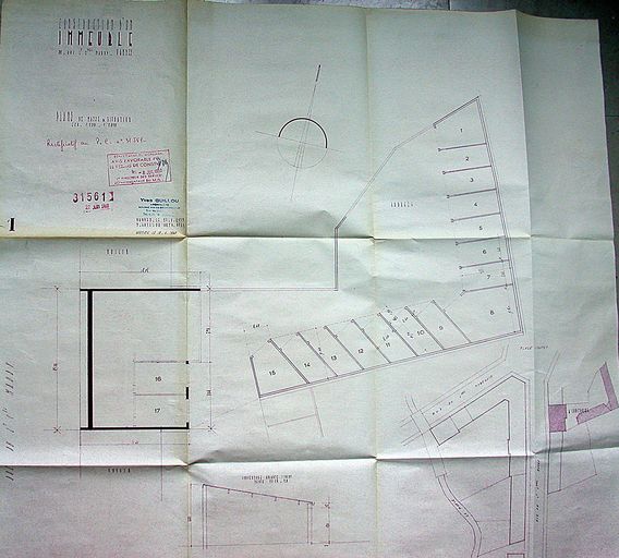 Plan masse et de situation (rectif) par Guillou, 27 juin 1960. AM Vannes 1G59.Immatriculation