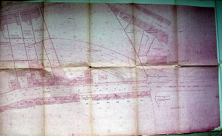 Boulevard de la Paix. Plan parcellaire du tronçon des rues Saint-Gildas et Aristide Briand, sans date, 195?. AM Vannes 1 O 216 déviation RN 165.Immatriculation