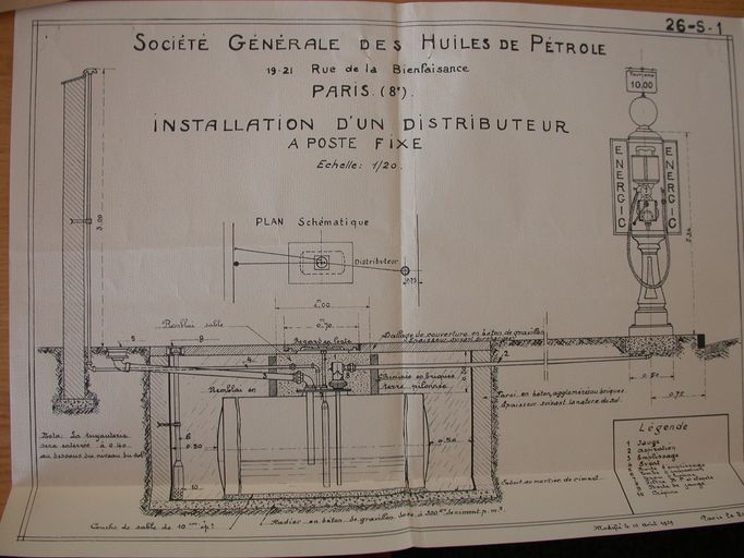 Dessin d'un distributeur routier fixe. AD Morbihan 5 M 231.Immatriculation
