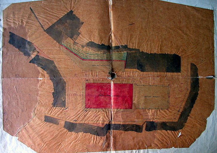 Plan de la place de la Poissonnerie : projet de construction de la halle. AM Vannes. Sans date, vers 1875. AM Vannes, 1 O 216.Immatriculation