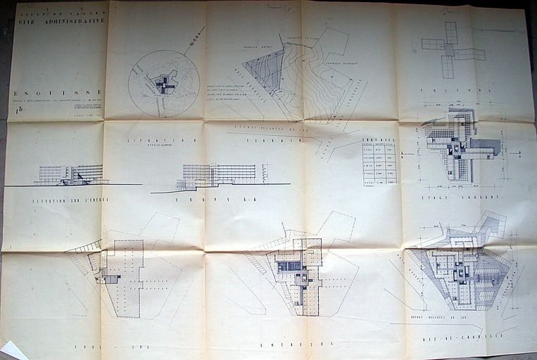 Esquisse de la cité administrative par J. Hourlier, 20 mai 1960. AM Vannes 1 O 216.Immatriculation