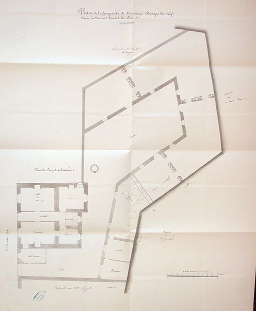 Plan de la brasserie Desgoulles, négociant, située au 2 rue des Douves du Port, 15 novembre 1856. AD Morbihan 5 M 525.Immatriculation