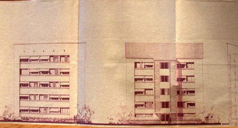 Réalisation de 128 logements HLM. Projet de Yves Guillou, 1954. Elévations. AD Morbihan 110 J 4033.Immatriculation