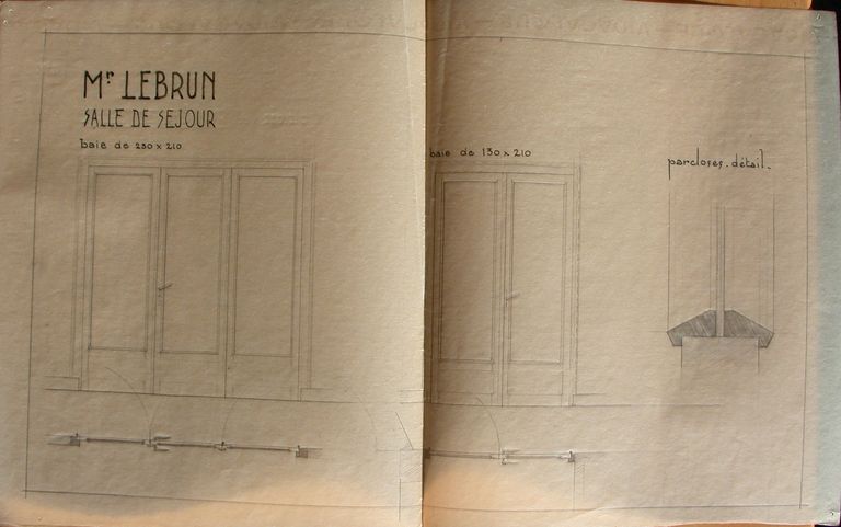 Projet de fermetures de baies de la salle de séjour. AD Morbihan 110 J 4483.Immatriculation