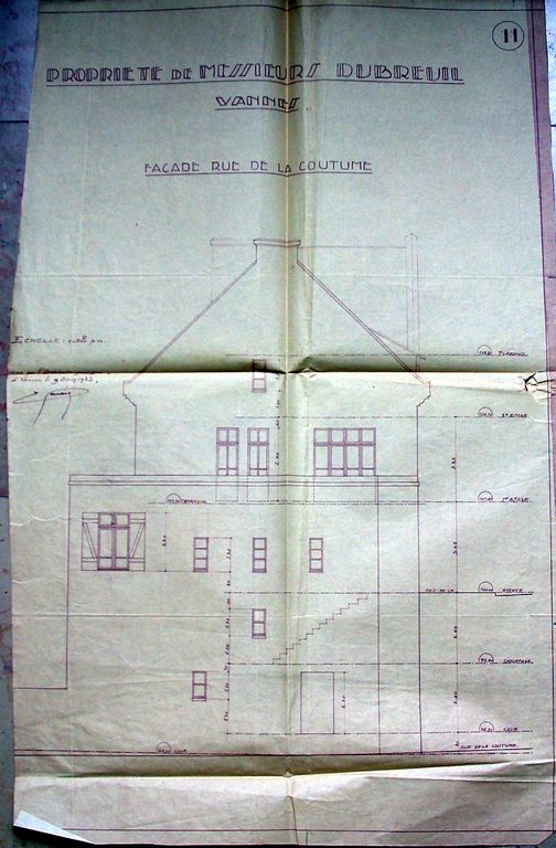 Elévation latérale, par Gemain, 9 juin 1932. AM Vannes 5 I 162.Immatriculation