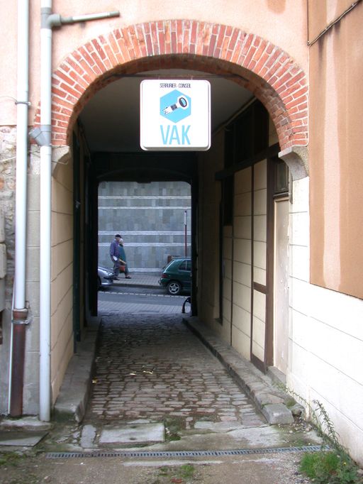 Elévation postérieure, passage cocher.Immatriculation
